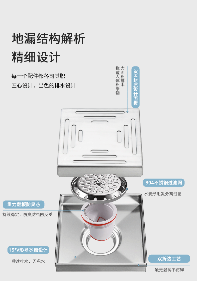 核心工藝:15度V形導水槽設計,秒速排水,創(chuàng)新設計帶來強勁實力;