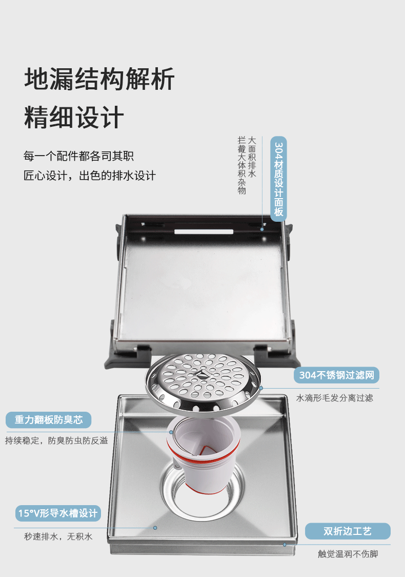 核心工藝:15度V形導(dǎo)水槽設(shè)計(jì),秒速排水,創(chuàng)新設(shè)計(jì)帶來強(qiáng)勁實(shí)力;