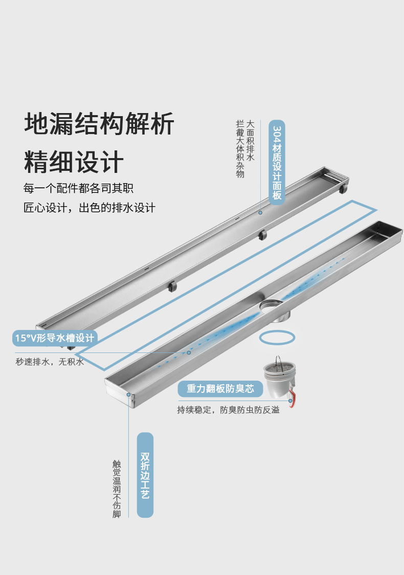 核心工藝:15度V形導(dǎo)水槽設(shè)計,秒速排水,創(chuàng)新設(shè)計帶來強(qiáng)勁實力;