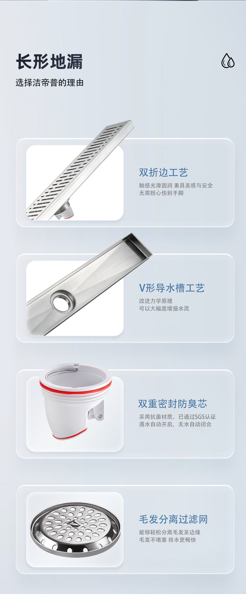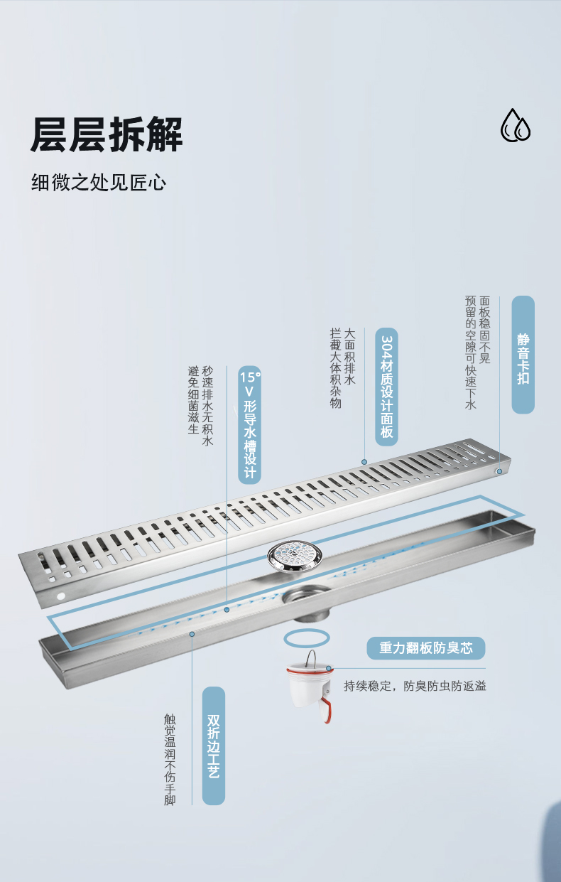 核心工藝:15度V形導(dǎo)水槽設(shè)計,秒速排水,創(chuàng)新設(shè)計帶來強勁實力;