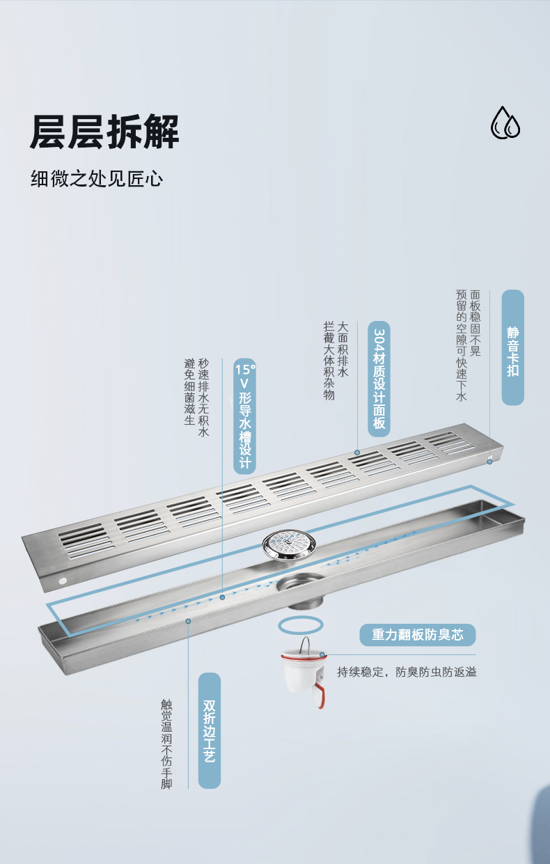 核心工藝:15度V形導水槽設(shè)計,秒速排水,創(chuàng)新設(shè)計帶來強勁實力;