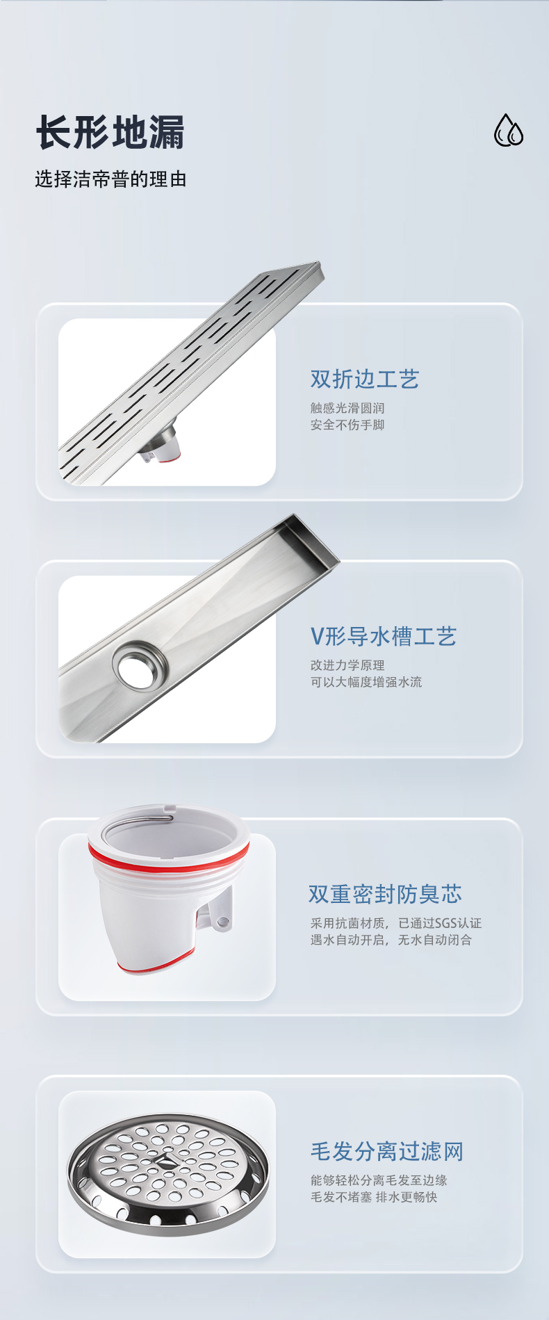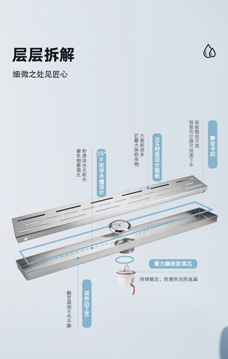 核心工藝:15度V形導(dǎo)水槽設(shè)計(jì),秒速排水,創(chuàng)新設(shè)計(jì)帶來強(qiáng)勁實(shí)力;
