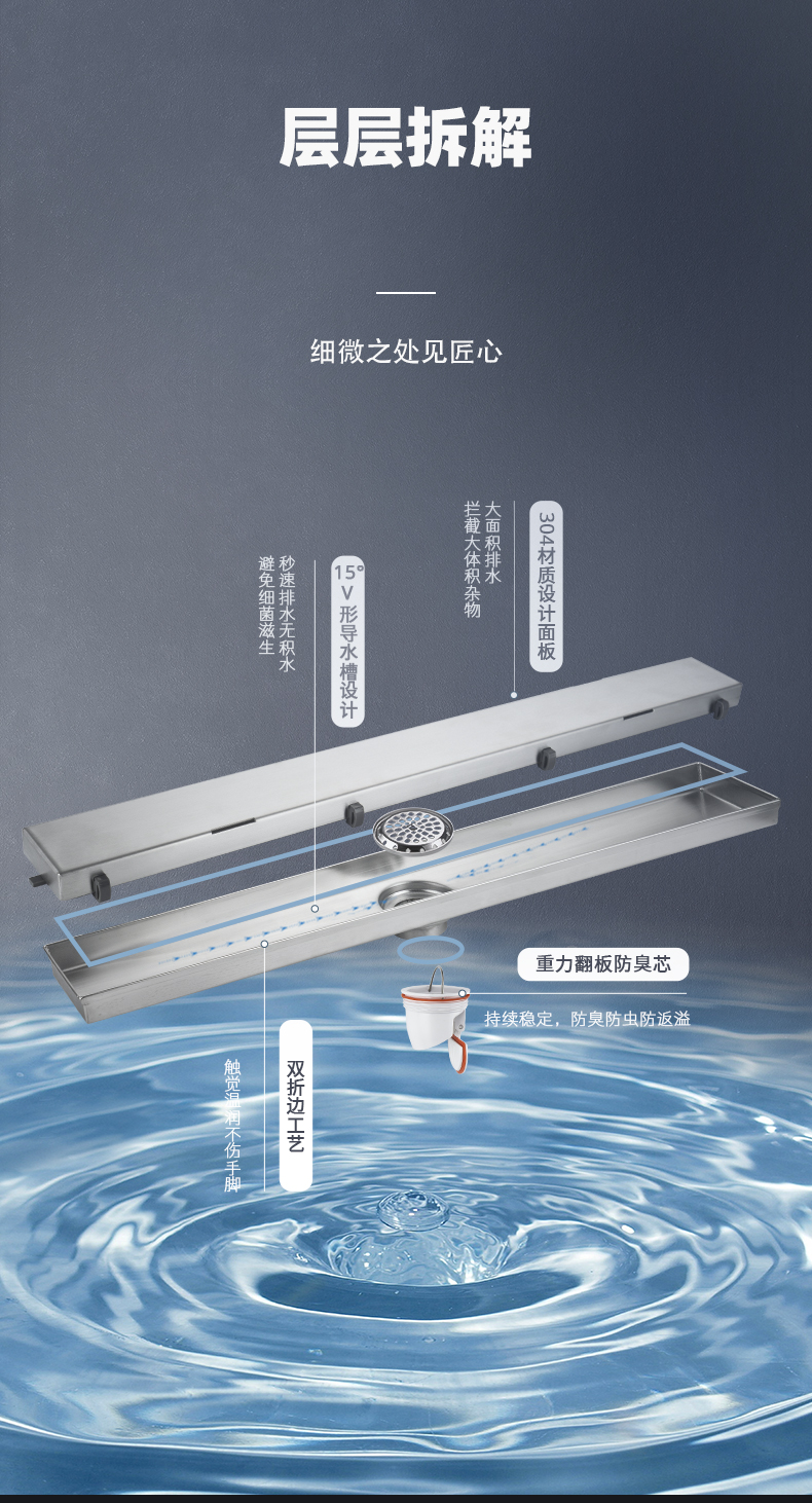 核心工藝:15度V形導(dǎo)水槽設(shè)計,秒速排水,創(chuàng)新設(shè)計帶來強(qiáng)勁實力;